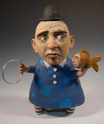 Faces and color dominate both my oil painting and clay sculpture. In oils, I wield a palette of vivid colors to embody the spirit of the person and reveal her (or his) frame of mind in that exact moment. My work in clay, though still involving the human form, is darkly whimsical like sweet and sour candy.